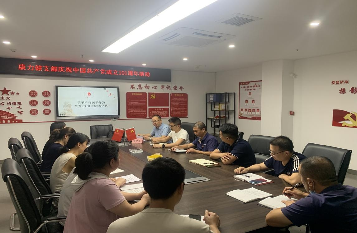 為慶祝中國(guó)共產(chǎn)黨建黨 101 周年, 7 月 1 日, 康力健黨支部開展 “七一” 主題黨日活動(dòng), 通過唱紅歌、 重溫入黨誓詞、 支部書記講黨 課等多種形式, 教育引導(dǎo)黨員干部不忘初心, 知行合一, 以實(shí)際行動(dòng) 迎接黨的二十大勝利召開。