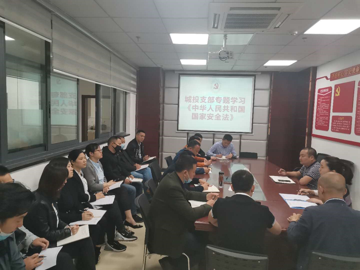 2020年4月27日上午,城投支部副書記譙棣升召集全體黨員、入黨積極分子開展《中華人民共和國國家安全法》專題學(xué)習(xí)暨節(jié)前廉潔提醒談話。會(huì)上,譙棣升從嚴(yán)于律己、以身作則、管好親屬等方面要求全體同志繼續(xù)樹立廉潔自律好風(fēng)氣,爭做模范黨員好先鋒。