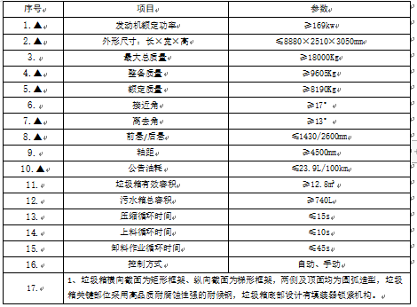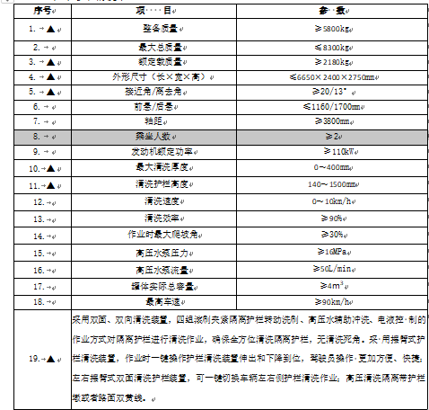 采購護欄清洗車1臺、清洗(灑水)車2臺、壓縮式垃圾車1臺、車廂可卸式垃圾車5臺、揭蓋垃圾車7臺(包含車輛上牌,車輛首次強制保險及商業(yè)險,其中商業(yè)險不低于150萬元)。