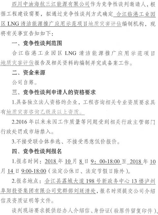 合江臨港工業(yè)園區(qū)LNG清潔能源推廣應用示范項目地質災害評估單位競爭性談判公告.docx