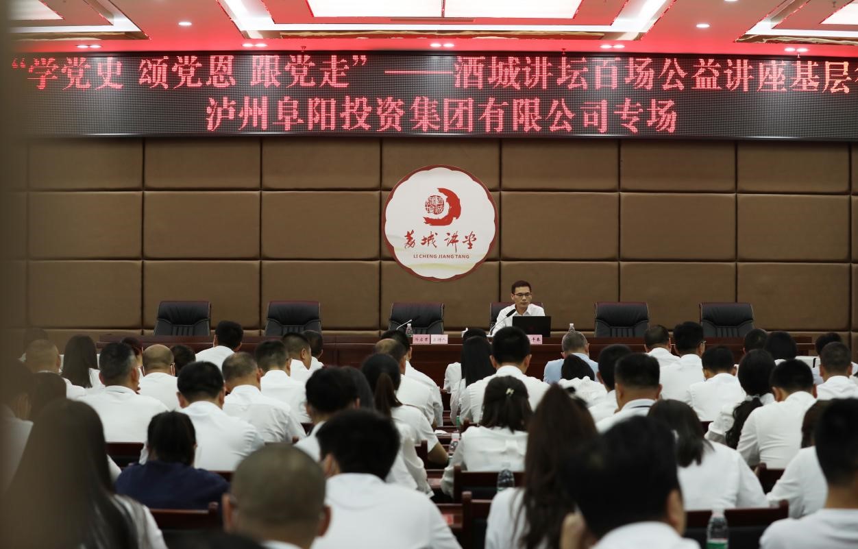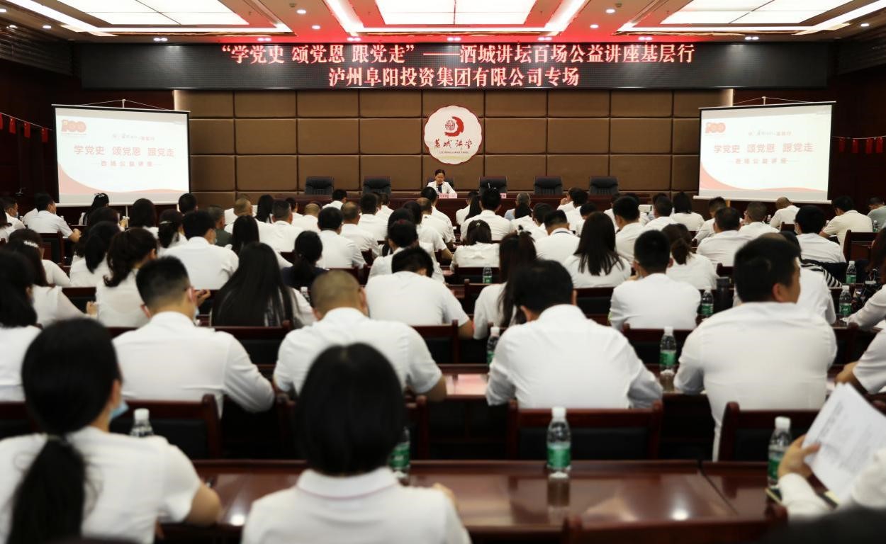 5月19日下午,“學(xué)黨史頌黨恩跟黨走”——酒城講壇百場公益講座基層行瀘州阜陽投資集團(tuán)有限公司專場在政務(wù)中心15樓會議室舉行?;顒佑牲h委書記、董事長游啟君主持,合江縣委宣傳部派出指導(dǎo)人員,集團(tuán)全體領(lǐng)導(dǎo)班子、本部及下屬公司職工200余人參加。