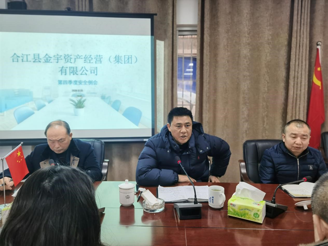 2020年12月23日合江縣金宇資產經營(集團)有限公司召開了第四季度安全會議,會議主要圍繞公司年終安全生產進行了總結,對2021年安全工作進行了安排部署。會議上董事長鞠志良強調國有資產在保值增值的同時,更要抓好國有資產的安全排查,確保資產安全。