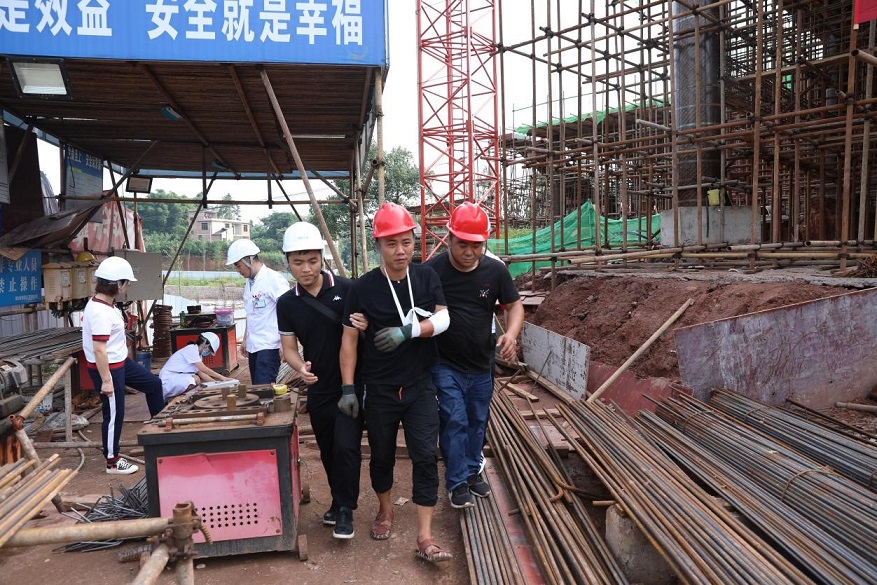 上午9時30分,演練正式開始。鋼筋棚工人受傷,指揮長吳平收到消息后立即組織現(xiàn)場人員開展救援,疏散圍觀工人,通知醫(yī)護人員開展救治,救治成功后現(xiàn)場進行了應(yīng)急救援知識的講解,順利完成此次應(yīng)急救援演練。