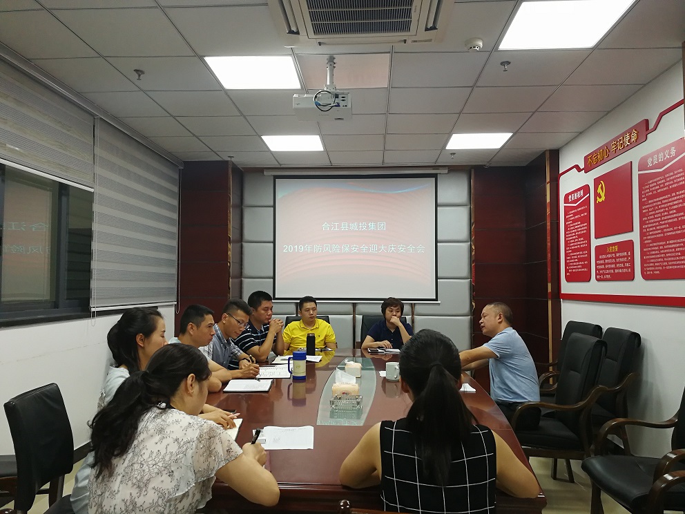 2019年9月12日上午,合江縣城市開發(fā)投資(集團(tuán))有限公司總經(jīng)理張學(xué)彬召集各部門、各子公司召開2019年“防風(fēng)險(xiǎn)保安全迎大慶”暨節(jié)前安全生產(chǎn)工作會(huì)議,傳達(dá)貫徹各級(jí)安全生產(chǎn)會(huì)議、文件精神,落實(shí)中秋、國(guó)慶節(jié)前安全生產(chǎn)大檢查、節(jié)假日期間值班值守等工作。