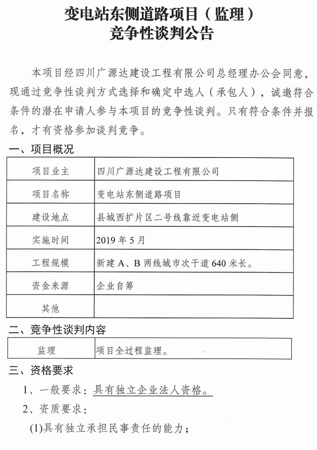 變電站東側(cè)道路項(xiàng)目(監(jiān)理)競爭性談判公告