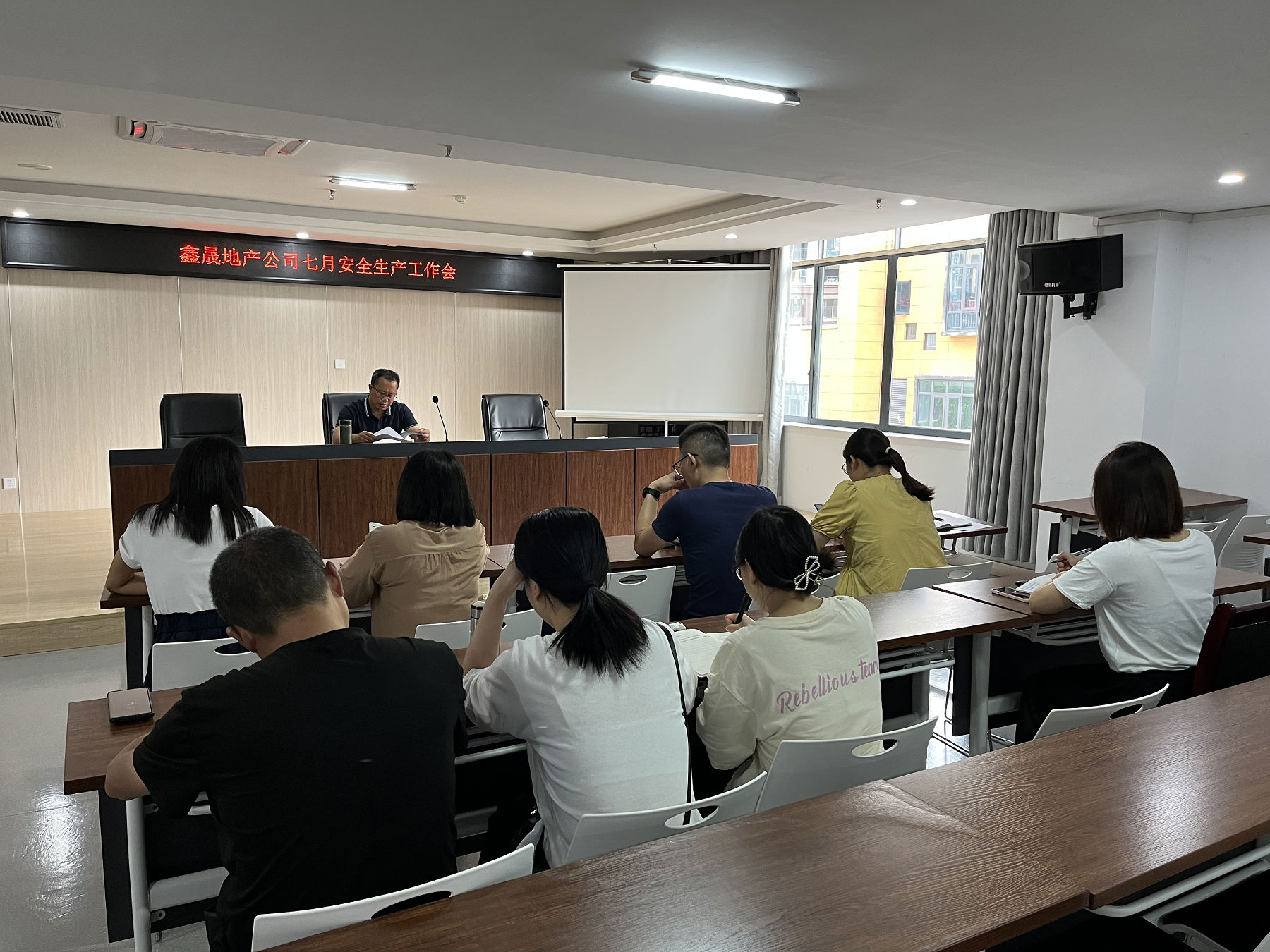 2022 年 8 月 4 日, 瀘州鑫晟房地產(chǎn)開(kāi)發(fā)有限公司組織召開(kāi)七月安全生產(chǎn)工作會(huì),會(huì)議由董事長(zhǎng)任東財(cái)主持,公司全體員工參加。