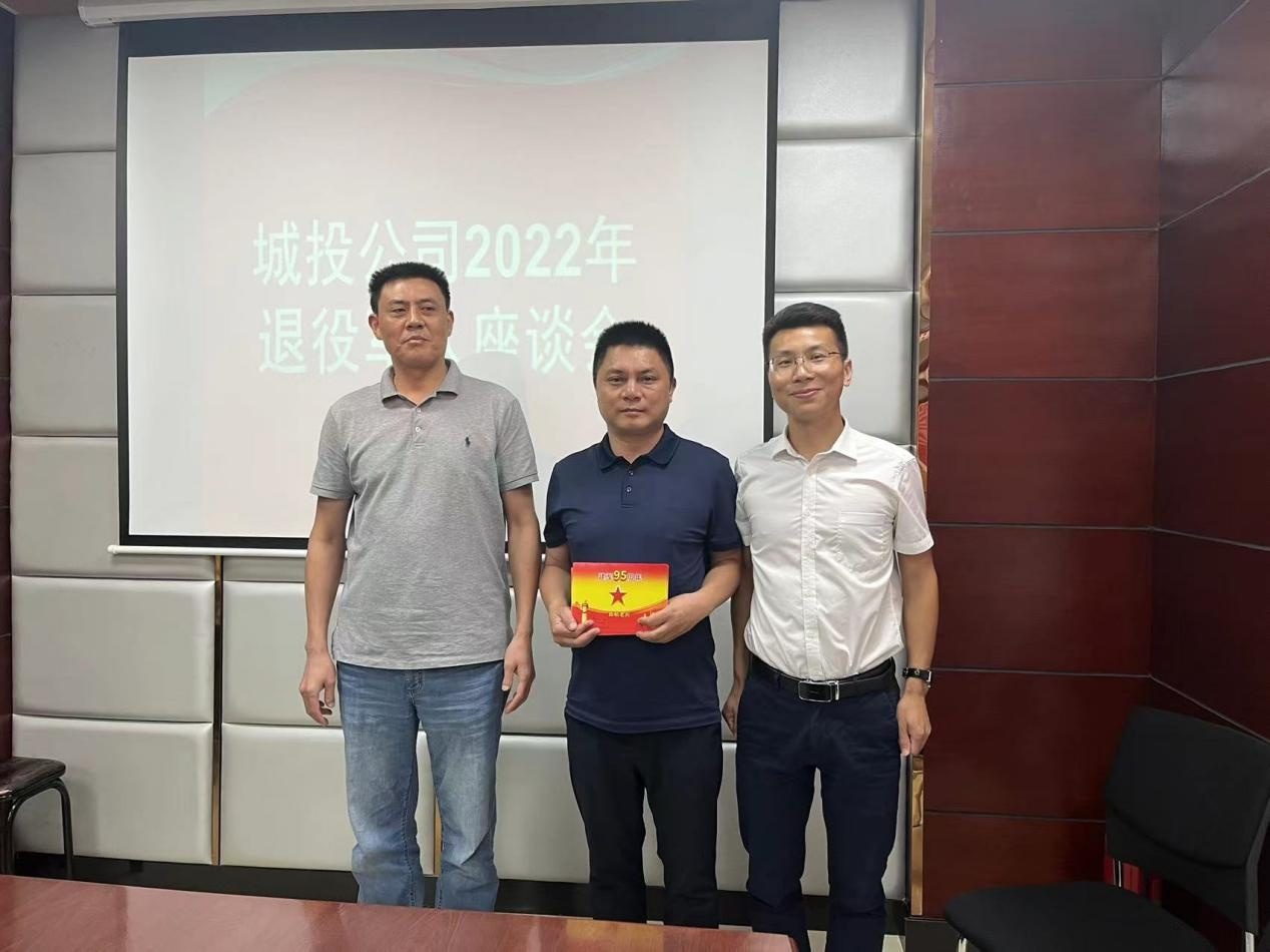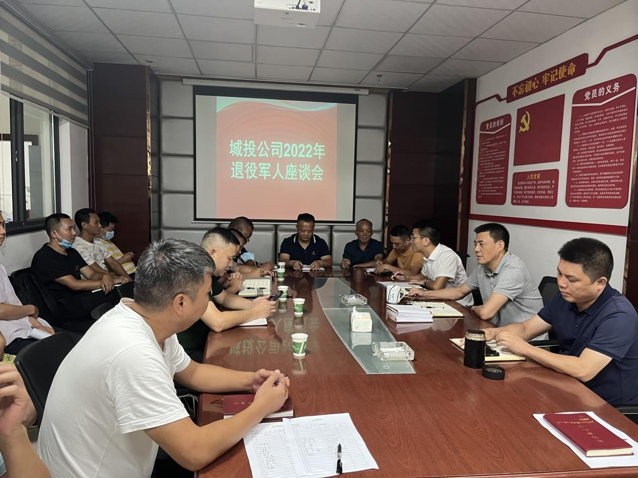 為慶祝中國(guó)人民解放軍建軍 95 周年, 2022 年 8 月 1 日 下午, 城投公司董事長(zhǎng)兼總經(jīng)理鞠志良、 副總經(jīng)理陳云峰組 織召開退役軍人座談會(huì)。