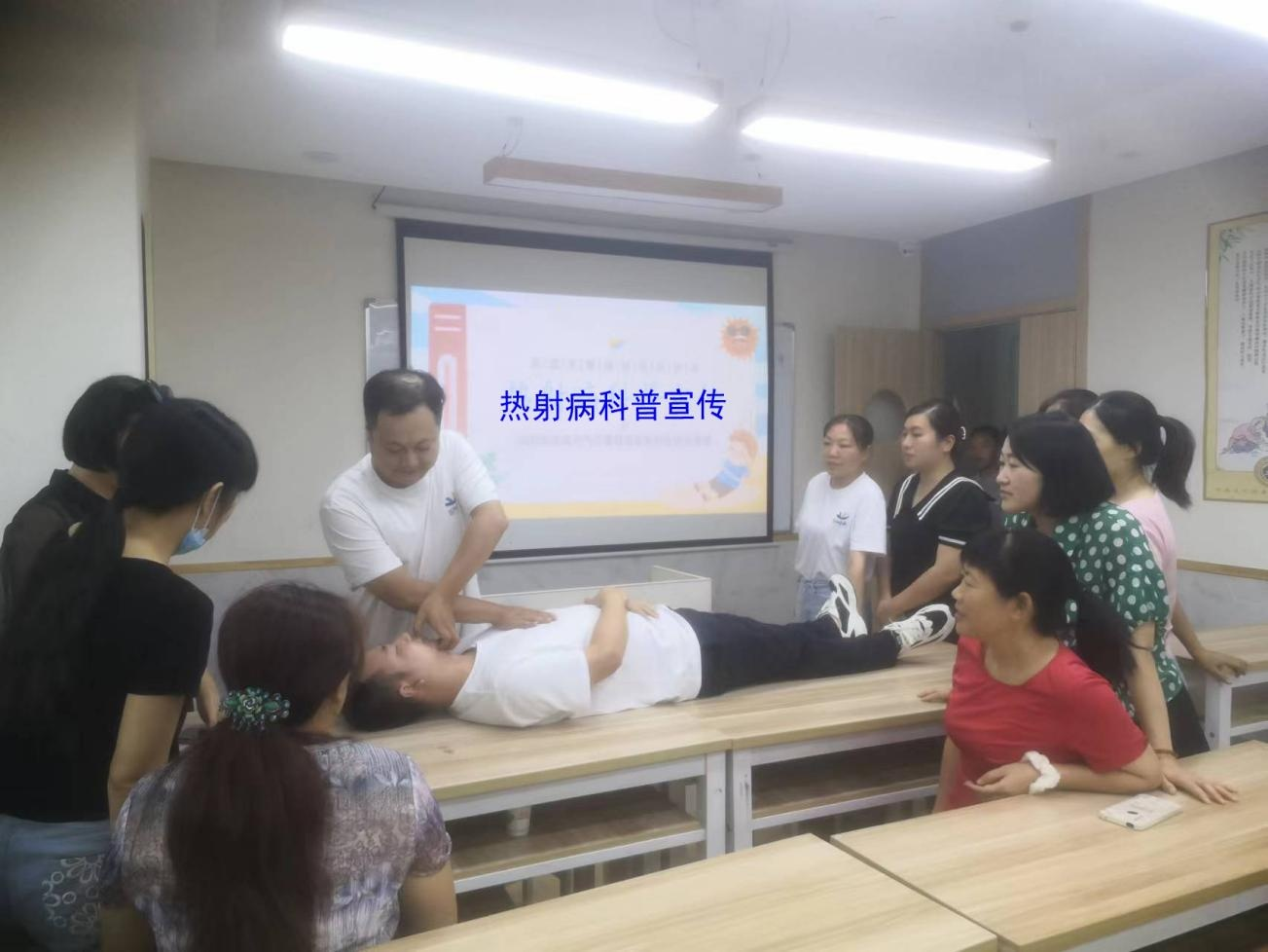 全體員工一起學(xué)習(xí)熱射病的各種防范措施并進(jìn)行熱射病的急救演練。 提高大家預(yù)防熱射病的意識(shí), 筑牢全校師生的健 康和安全防范屏障,為暑期課程撐起夏日“保護(hù)傘”。