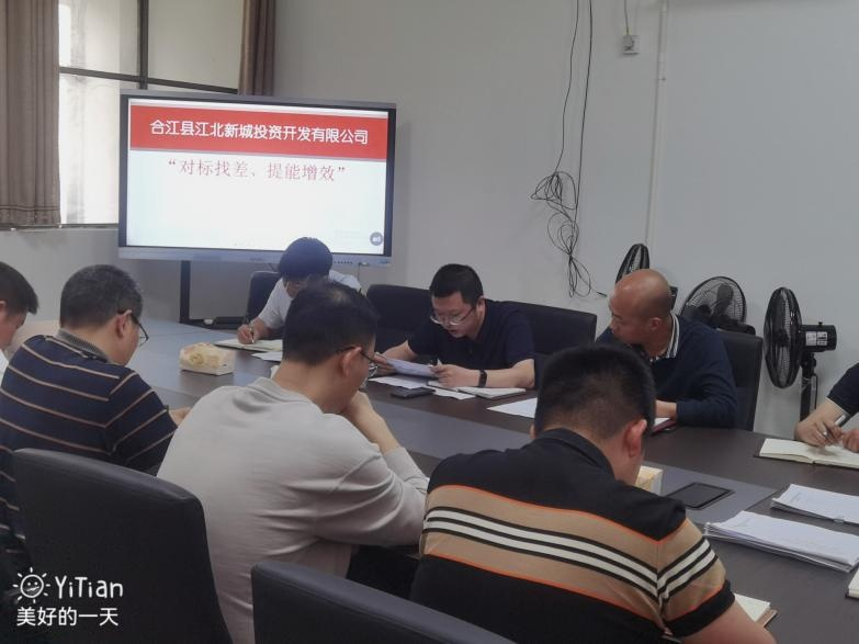 4 月 21 號下午, 江北公司組織各部門、 各下屬公司全體 員工召開 “對標(biāo)找差、 體能增效” 動員會, 會上陳磊傳達(dá)了 李仁軍書記在合江縣 “對標(biāo)找差、 提能增效” 活動動員會上 的講話精神。 以 “對標(biāo)找差、 提能增效” 為主題, 對標(biāo)先進(jìn), 找準(zhǔn)差距、比學(xué)趕超、提高績效。